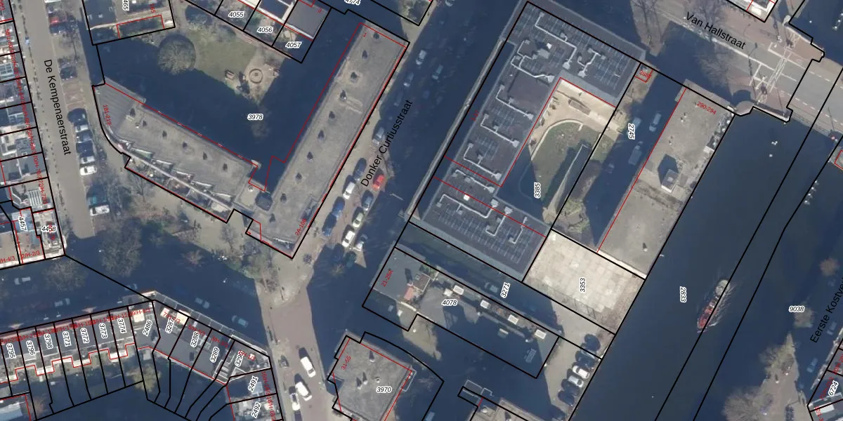 Donker Curtiusstraat 17 is gelegen op kadastraal perceel ASD21Y3385. Deze kadastrale aanduiding is uniek en wordt gebruikt door het Kadaster om eigendomsrechten en andere zakelijke rechten vast te leggen. Het perceel maakt onderdeel uit van de kadastrale gemeente Amsterdam.