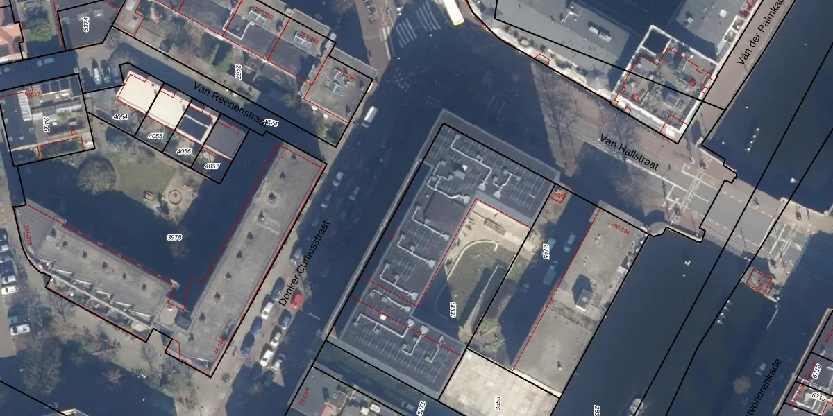 Donker Curtiusstraat 5 is gelegen op kadastraal perceel ASD21Y3385. Deze kadastrale aanduiding is uniek en wordt gebruikt door het Kadaster om eigendomsrechten en andere zakelijke rechten vast te leggen. Het perceel maakt onderdeel uit van de kadastrale gemeente Amsterdam.