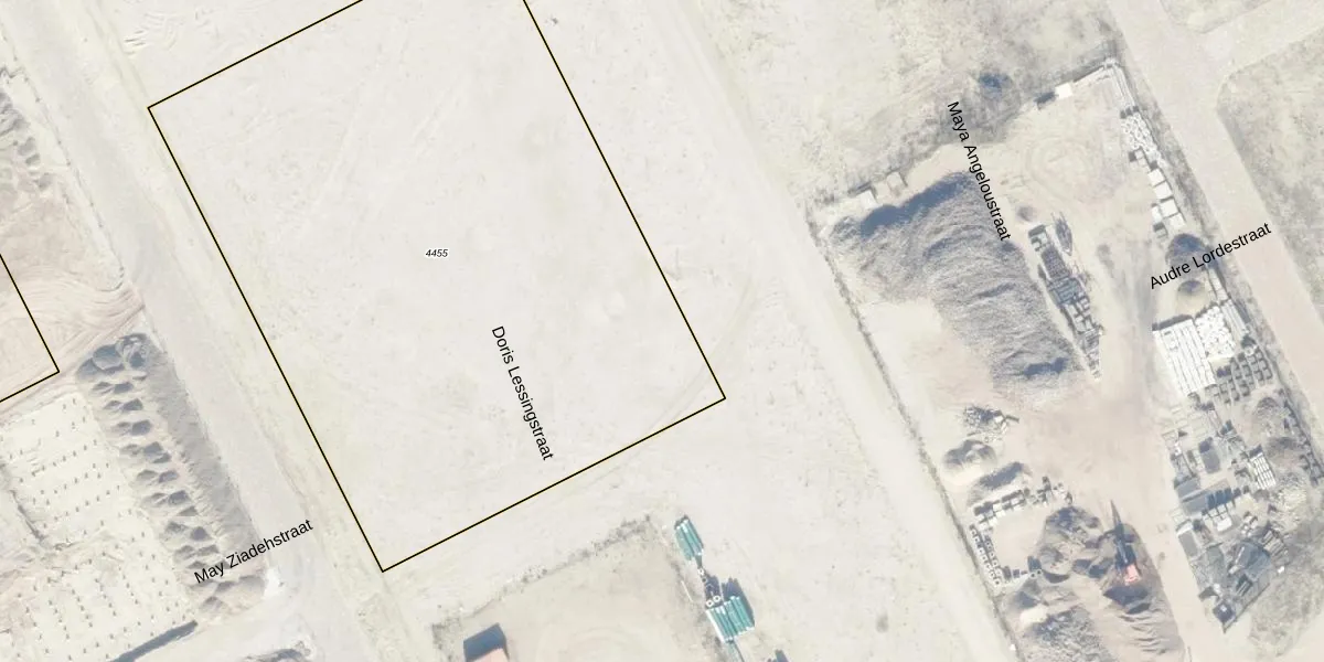 Het perceel waarop Doris Lessingstraat 182 staat heeft een oppervlakte van 4553 m². Dit is een zeer groot perceel. De perceeloppervlakte wordt geregistreerd door het Kadaster. Gedetailleerde informatie over de maten van dit perceel kunt u vinden in het rapport Kadastrale kaart met maatvoering van Doris Lessingstraat 182.