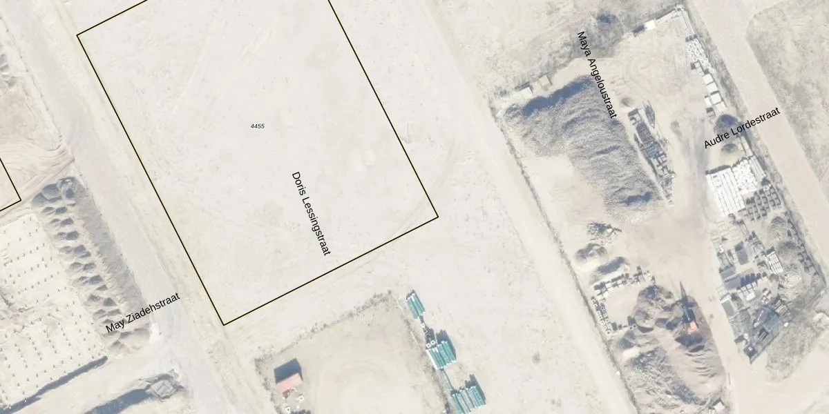 Het perceel waarop Doris Lessingstraat 186 staat heeft een oppervlakte van 4553 m². Dit is een zeer groot perceel. De perceeloppervlakte wordt geregistreerd door het Kadaster. Gedetailleerde informatie over de maten van dit perceel kunt u vinden in het rapport Kadastrale kaart met maatvoering van Doris Lessingstraat 186.