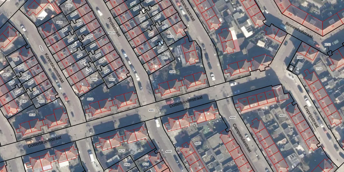 Het perceel waarop Dotterbloemstraat 29 staat heeft een oppervlakte van 797 m². Dit is een groot perceel. De perceeloppervlakte wordt geregistreerd door het Kadaster. Gedetailleerde informatie over de maten van dit perceel kunt u vinden in het rapport Kadastrale kaart met maatvoering van Dotterbloemstraat 29.