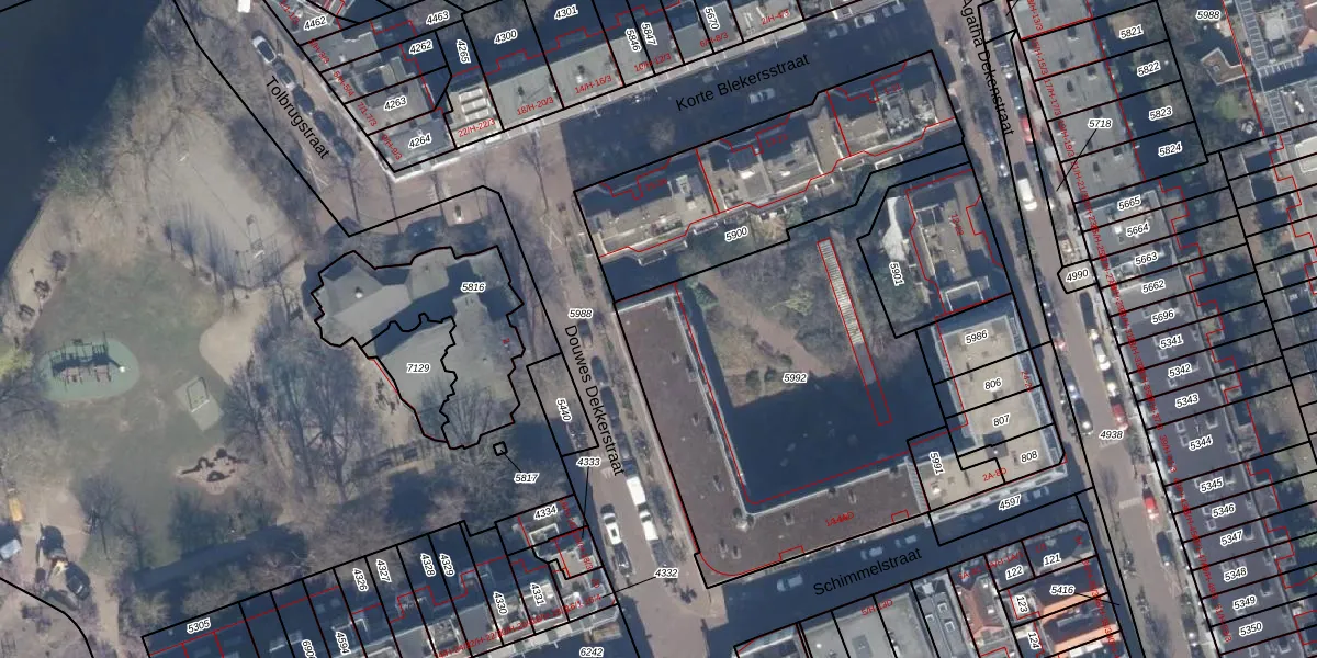 Het adres ligt op het perceel ASD16-T-5992, dat zich in de kadastrale gemeente Amsterdam bevindt. Het perceel is met 1870 m² relatief groot. Het gemiddelde ligt in de kadastrale gemeente Amsterdam op 245,33 m². Het grootste perceel in de kadastrale gemeente is 3,3 ha. Het kleinste perceel heeft een oppervlakte van 0 m². Op het perceel liggen in totaal 27 adressen. In de Basisregistratie Kadaster (BRK) werden de grenzen van het perceel geregistreerd op 12-01-2007.