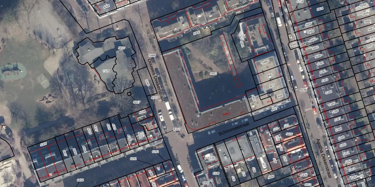 Het perceel waarop Douwes Dekkerstraat 5-C staat heeft een oppervlakte van 1870 m². Dit is een zeer groot perceel. De perceeloppervlakte wordt geregistreerd door het Kadaster. Gedetailleerde informatie over de maten van dit perceel kunt u vinden in het rapport Kadastrale kaart met maatvoering van Douwes Dekkerstraat 5-C.