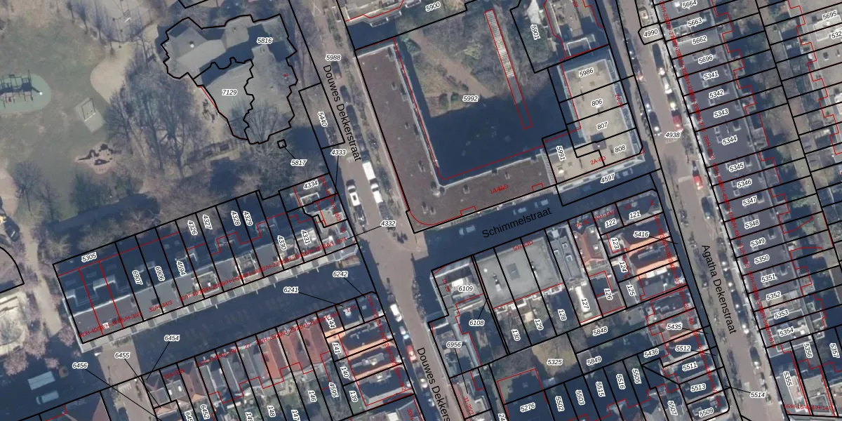 Het perceel waarop Douwes Dekkerstraat 9-D staat heeft een oppervlakte van 1870 m². Dit is een zeer groot perceel. De perceeloppervlakte wordt geregistreerd door het Kadaster. Gedetailleerde informatie over de maten van dit perceel kunt u vinden in het rapport Kadastrale kaart met maatvoering van Douwes Dekkerstraat 9-D.