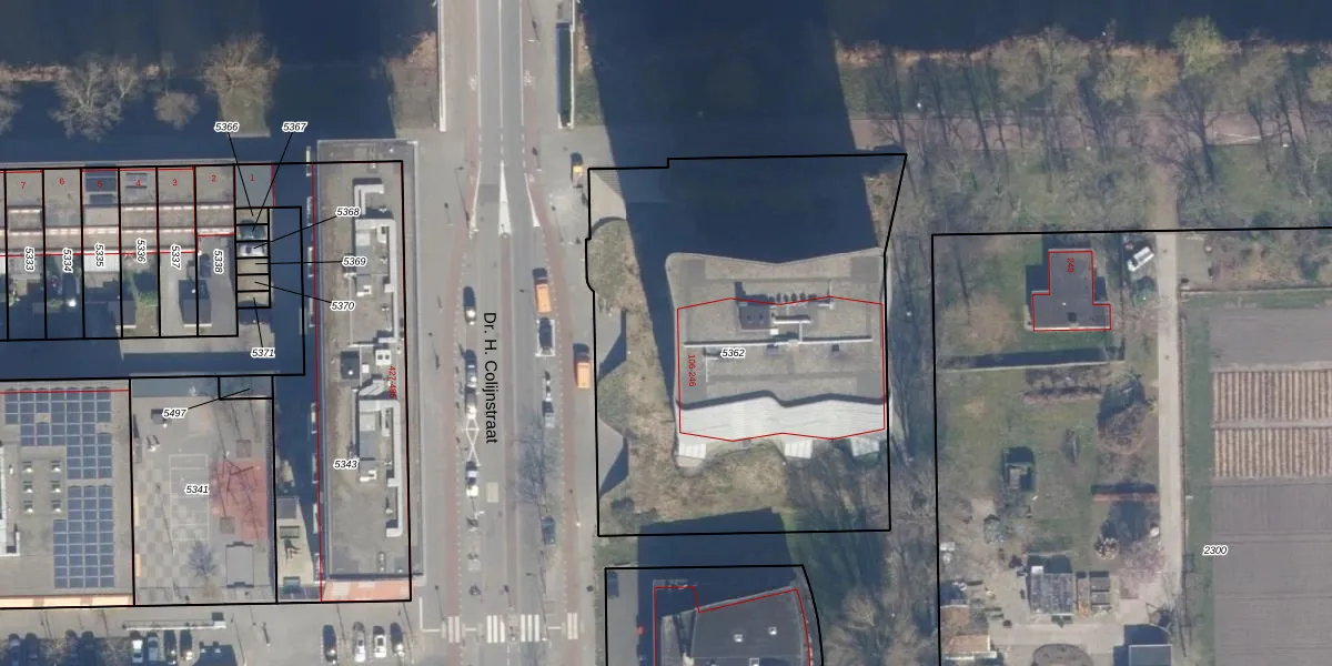 Het perceel waarop Dr. H. Colijnstraat 182 staat heeft een oppervlakte van 2490 m². Dit is een zeer groot perceel. De perceeloppervlakte wordt geregistreerd door het Kadaster. Gedetailleerde informatie over de maten van dit perceel kunt u vinden in het rapport Kadastrale kaart met maatvoering van Dr. H. Colijnstraat 182.