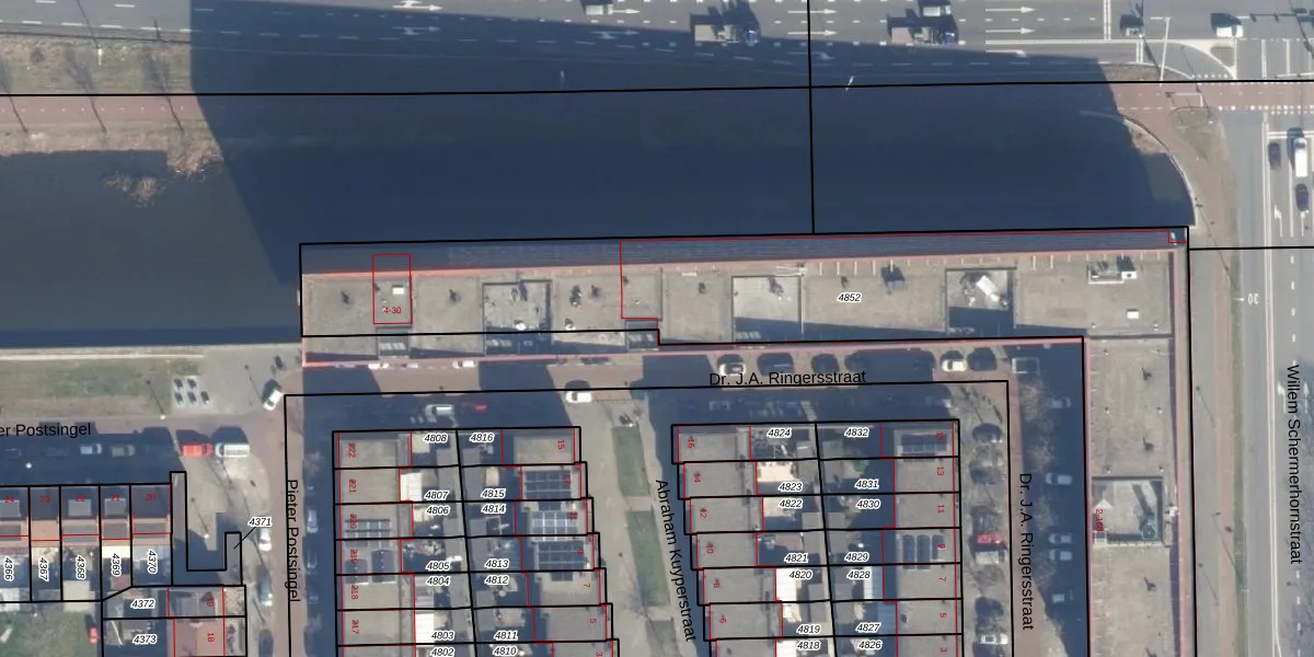 Dr. J.A. Ringersstraat 54 is gelegen op kadastraal perceel STN02I4852. Deze kadastrale aanduiding is uniek en wordt gebruikt door het Kadaster om eigendomsrechten en andere zakelijke rechten vast te leggen. Het perceel maakt onderdeel uit van de kadastrale gemeente Sloten Noord-Holland.