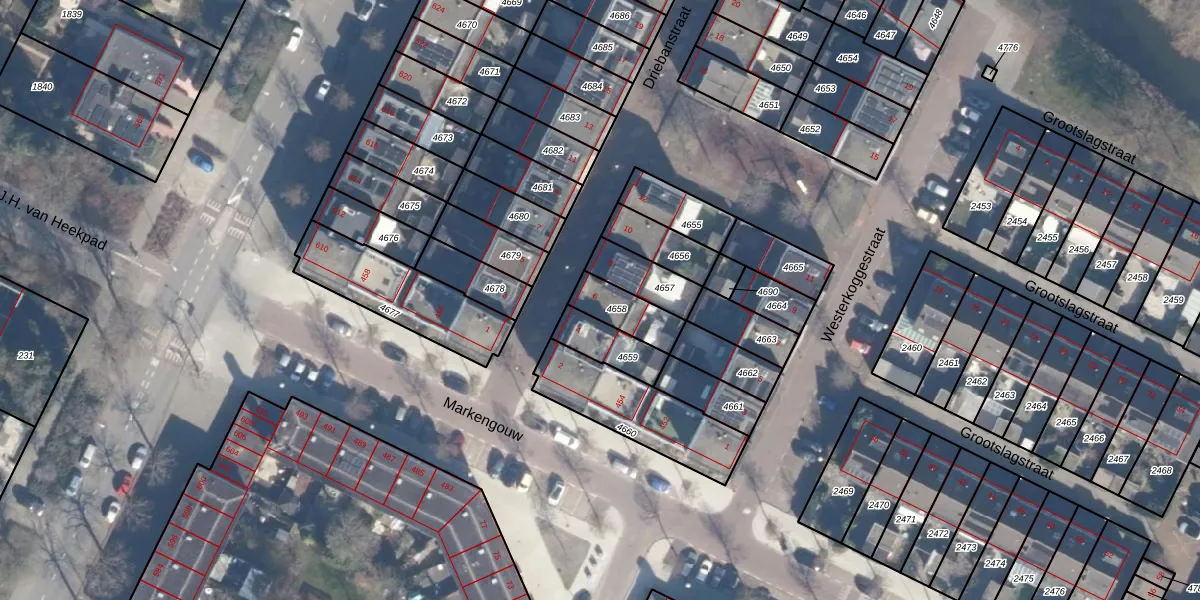 Gebruik de zoekbalk of klik op een perceel voor informatie over de adressen binnen dit perceel.