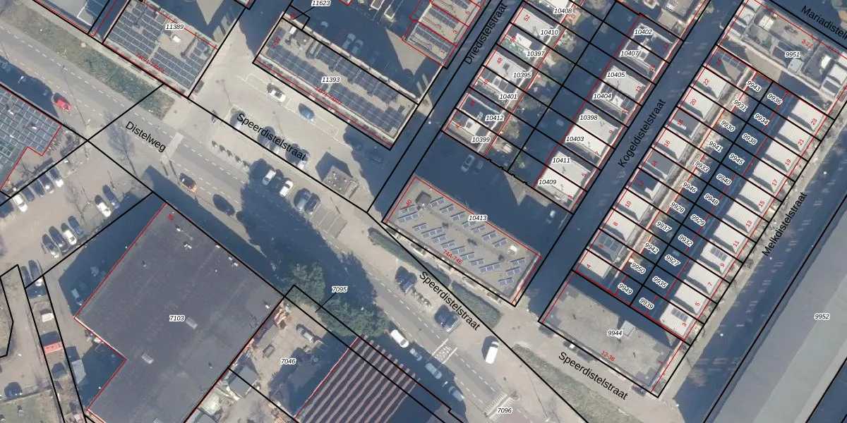 Driedistelstraat 18 is gelegen op kadastraal perceel ASD07K10413. Deze kadastrale aanduiding is uniek en wordt gebruikt door het Kadaster om eigendomsrechten en andere zakelijke rechten vast te leggen. Het perceel maakt onderdeel uit van de kadastrale gemeente Amsterdam.