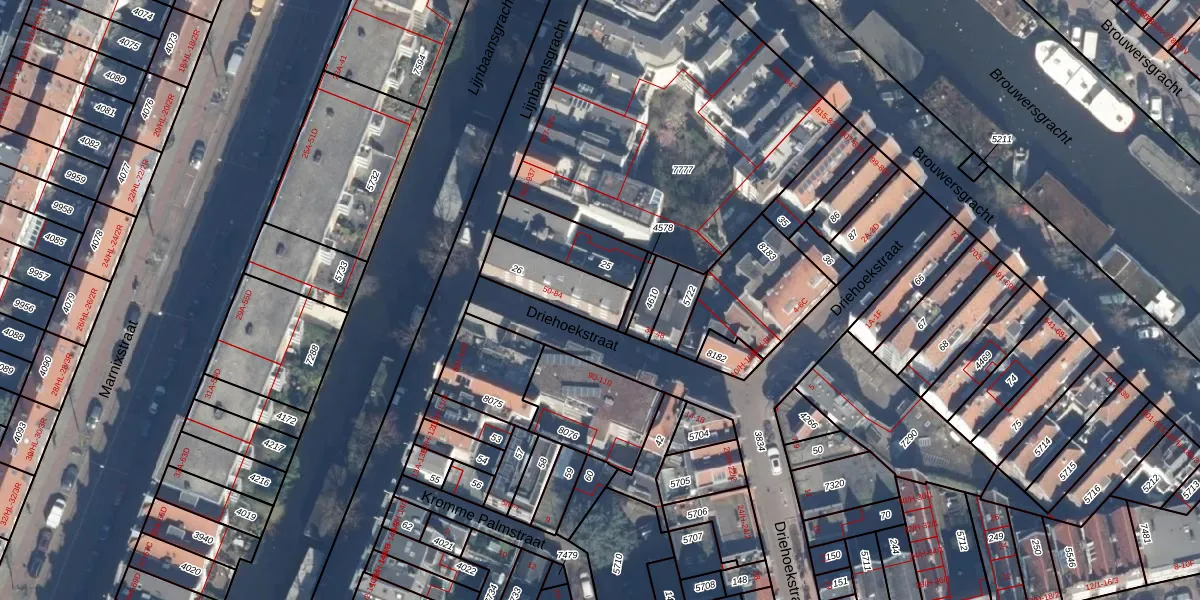Het adres is gelegen op perceel 26 in de sectie L en de kadastrale gemeente Amsterdam. De kadastrale aanduiding is aldus ASD08-L-26. De gemiddelde perceelgrootte in Amsterdam is 202,23 m². Dit perceel is kleiner: de perceeloppervlakte bedraagt 177 m². Het grootste perceel in de kadastrale gemeente is 3,3 ha. Het kleinste perceel heeft een oppervlakte van 0 m². Op het perceel zijn 18 adressen aanwezig. De huidige grenzen van het perceel zijn digitaal in de Basisregistratie Kadaster (BRK) geregistreerd op 10-01-2007.