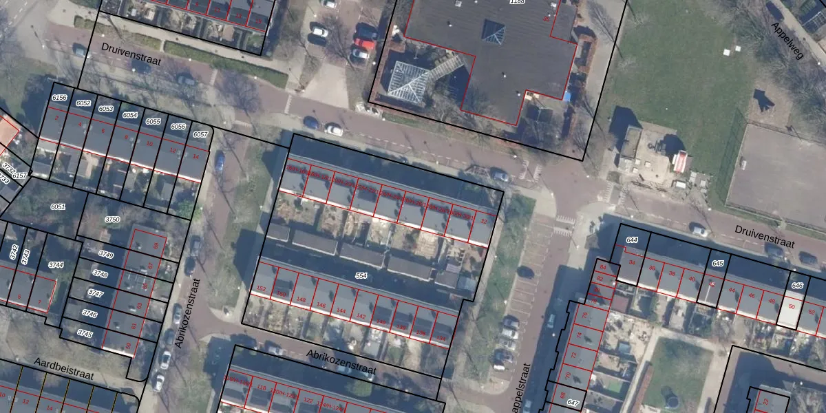 Het perceel waarop Druivenstraat 26-H staat heeft een oppervlakte van 2468 m². Dit is een zeer groot perceel. De perceeloppervlakte wordt geregistreerd door het Kadaster. Gedetailleerde informatie over de maten van dit perceel kunt u vinden in het rapport Kadastrale kaart met maatvoering van Druivenstraat 26-H.