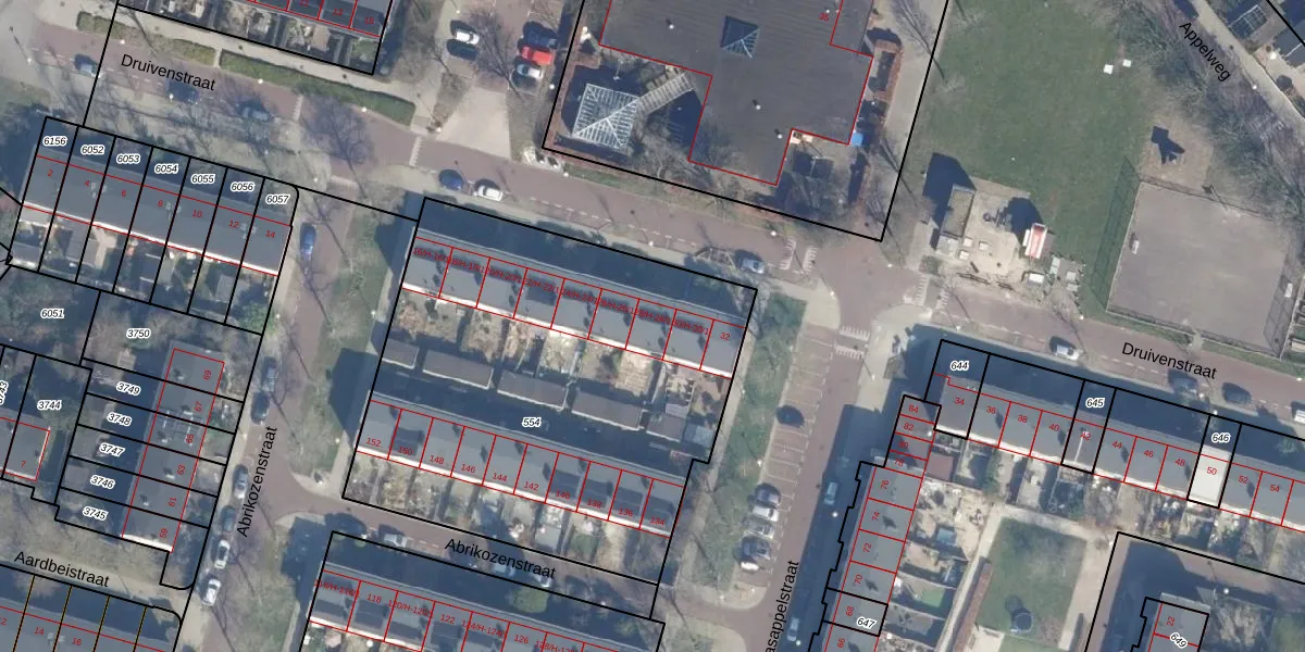 Het perceel waarop Druivenstraat 28-1 staat heeft een oppervlakte van 2468 m². Dit is een zeer groot perceel. De perceeloppervlakte wordt geregistreerd door het Kadaster. Gedetailleerde informatie over de maten van dit perceel kunt u vinden in het rapport Kadastrale kaart met maatvoering van Druivenstraat 28-1.