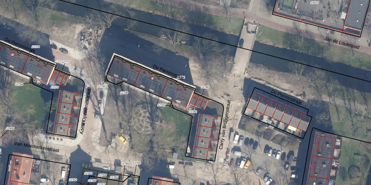 Het perceel waarop Du Perronstraat 11-H staat heeft een oppervlakte van 1077 m². Dit is een zeer groot perceel. De perceeloppervlakte wordt geregistreerd door het Kadaster. Gedetailleerde informatie over de maten van dit perceel kunt u vinden in het rapport Kadastrale kaart met maatvoering van Du Perronstraat 11-H.