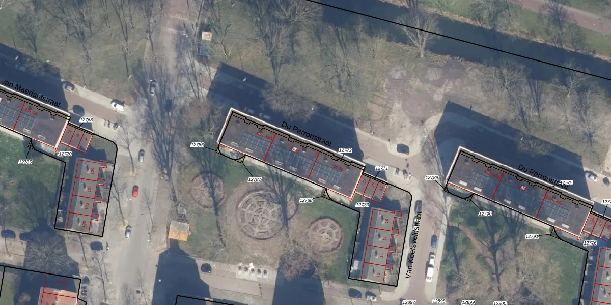 Het perceel waarop Du Perronstraat 40-2 staat heeft een oppervlakte van 1072 m². Dit is een zeer groot perceel. De perceeloppervlakte wordt geregistreerd door het Kadaster. Gedetailleerde informatie over de maten van dit perceel kunt u vinden in het rapport Kadastrale kaart met maatvoering van Du Perronstraat 40-2.