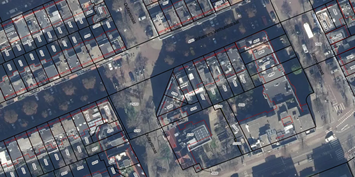 Het perceel waarop Dufaystraat 9-C staat heeft een oppervlakte van 95 m². Dit is een klein perceel. De perceeloppervlakte wordt geregistreerd door het Kadaster. Gedetailleerde informatie over de maten van dit perceel kunt u vinden in het rapport Kadastrale kaart met maatvoering van Dufaystraat 9-C.