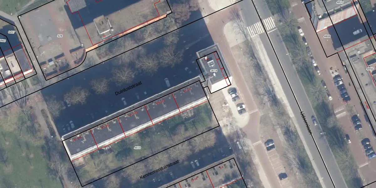 Het perceel waarop Duinluststraat 103 staat heeft een oppervlakte van 2112 m². Dit is een zeer groot perceel. De perceeloppervlakte wordt geregistreerd door het Kadaster. Gedetailleerde informatie over de maten van dit perceel kunt u vinden in het rapport Kadastrale kaart met maatvoering van Duinluststraat 103.