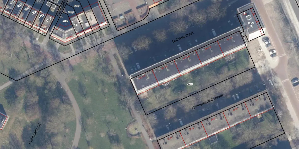Het perceel waarop Duinluststraat 165 staat heeft een oppervlakte van 2112 m². Dit is een zeer groot perceel. De perceeloppervlakte wordt geregistreerd door het Kadaster. Gedetailleerde informatie over de maten van dit perceel kunt u vinden in het rapport Kadastrale kaart met maatvoering van Duinluststraat 165.