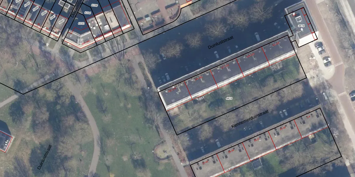 Het perceel waarop Duinluststraat 167 staat heeft een oppervlakte van 2112 m². Dit is een zeer groot perceel. De perceeloppervlakte wordt geregistreerd door het Kadaster. Gedetailleerde informatie over de maten van dit perceel kunt u vinden in het rapport Kadastrale kaart met maatvoering van Duinluststraat 167.