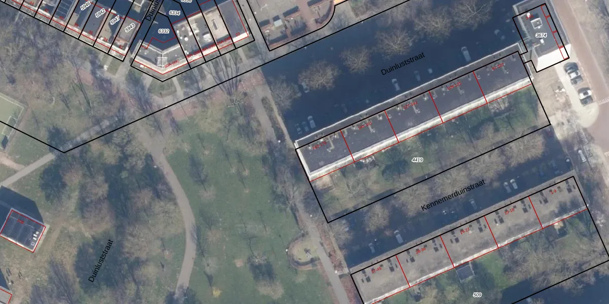 Het perceel waarop Duinluststraat 179 staat heeft een oppervlakte van 2112 m². Dit is een zeer groot perceel. De perceeloppervlakte wordt geregistreerd door het Kadaster. Gedetailleerde informatie over de maten van dit perceel kunt u vinden in het rapport Kadastrale kaart met maatvoering van Duinluststraat 179.
