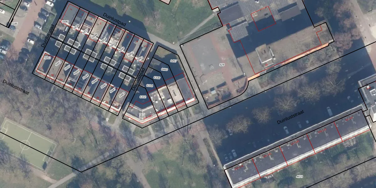 Het perceel waarop Duinluststraat 22-B staat heeft een oppervlakte van 252 m². Dit is een middelgroot perceel. De perceeloppervlakte wordt geregistreerd door het Kadaster. Gedetailleerde informatie over de maten van dit perceel kunt u vinden in het rapport Kadastrale kaart met maatvoering van Duinluststraat 22-B.