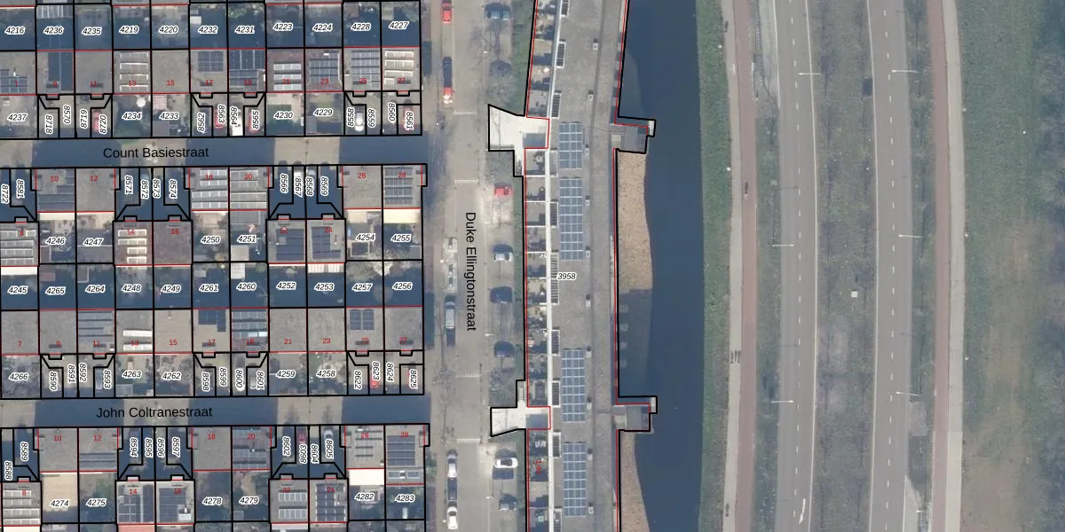 Het perceel waarop Duke Ellingtonstraat 15 staat heeft een oppervlakte van 3280 m². Dit is een zeer groot perceel. De perceeloppervlakte wordt geregistreerd door het Kadaster. Gedetailleerde informatie over de maten van dit perceel kunt u vinden in het rapport Kadastrale kaart met maatvoering van Duke Ellingtonstraat 15.
