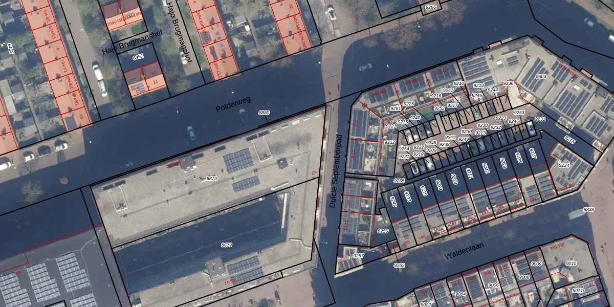 Het adres is gelegen op perceel 8879 in de sectie W en de kadastrale gemeente Amsterdam. De kadastrale aanduiding is aldus ASD19-W-8879. De oppervlakte van het perceel is 1643 m². Dat is groter dan gemiddeld in Amsterdam, waar de gemiddelde perceeloppervlakte op 1563,05 m² ligt. Het grootste perceel in de kadastrale gemeente is 17,9 ha. Het kleinste perceel heeft een oppervlakte van 0 m². Er zijn 91 adressen aanwezig op het perceel. De laatste wijziging in het de Basisregistratie Kadaster (BRK) was op 10-07-2018.