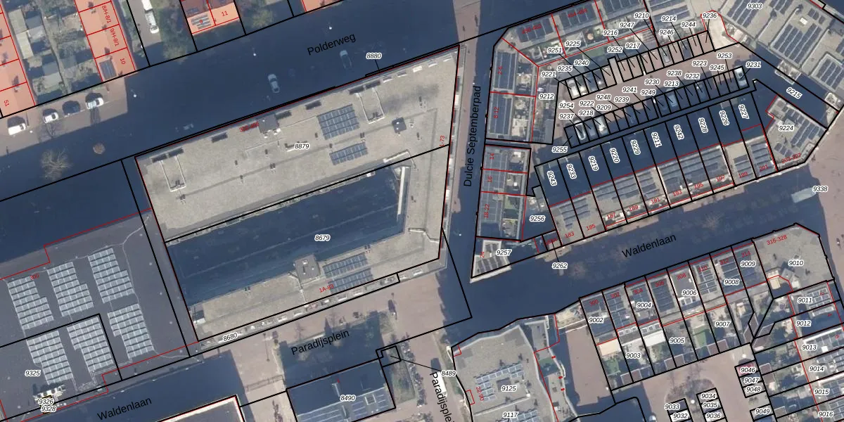 Het adres is gelegen op perceel 8679 in de sectie W en de kadastrale gemeente Amsterdam. De kadastrale aanduiding is aldus ASD19-W-8679. De oppervlakte van het perceel is 1627 m². Dat is groter dan gemiddeld in Amsterdam, waar de gemiddelde perceeloppervlakte op 1563,05 m² ligt. Het grootste perceel in de kadastrale gemeente is 17,9 ha. Het kleinste perceel heeft een oppervlakte van 0 m². Op het perceel zijn 56 adressen aanwezig. De huidige grenzen van het perceel zijn digitaal in de Basisregistratie Kadaster (BRK) geregistreerd op 29-11-2010.