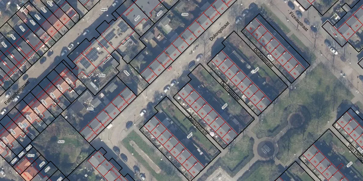Het perceel waarop Dulongstraat 34 staat heeft een oppervlakte van 957 m². Dit is een groot perceel. De perceeloppervlakte wordt geregistreerd door het Kadaster. Gedetailleerde informatie over de maten van dit perceel kunt u vinden in het rapport Kadastrale kaart met maatvoering van Dulongstraat 34.
