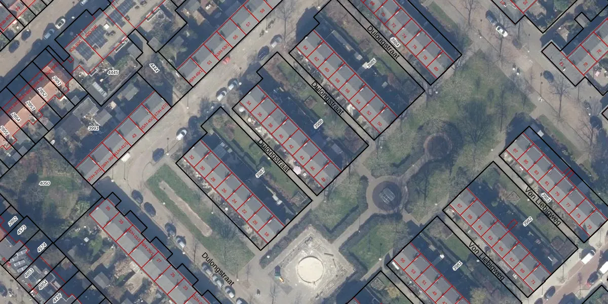 Het perceel waarop Dulongstraat 44 staat heeft een oppervlakte van 957 m². Dit is een groot perceel. De perceeloppervlakte wordt geregistreerd door het Kadaster. Gedetailleerde informatie over de maten van dit perceel kunt u vinden in het rapport Kadastrale kaart met maatvoering van Dulongstraat 44.