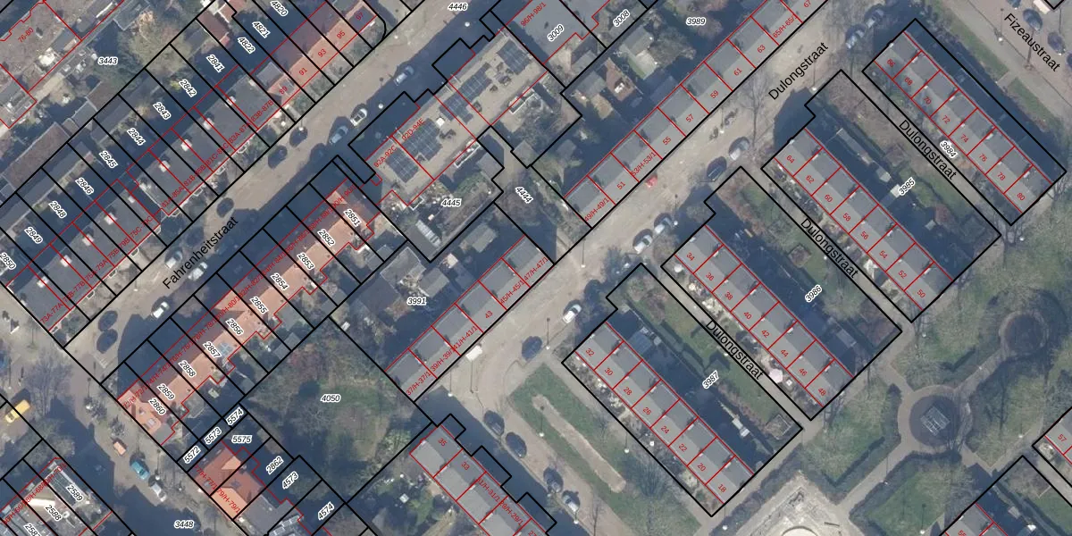 Het perceel waarop Dulongstraat 47-1 staat heeft een oppervlakte van 738 m². Dit is een groot perceel. De perceeloppervlakte wordt geregistreerd door het Kadaster. Gedetailleerde informatie over de maten van dit perceel kunt u vinden in het rapport Kadastrale kaart met maatvoering van Dulongstraat 47-1.