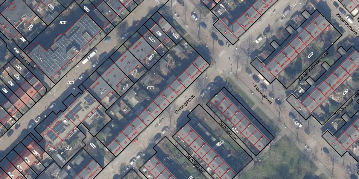 Dulongstraat 65-1 is gelegen op kadastraal perceel WTG02A3989. Deze kadastrale aanduiding is uniek en wordt gebruikt door het Kadaster om eigendomsrechten en andere zakelijke rechten vast te leggen. Het perceel maakt onderdeel uit van de kadastrale gemeente Watergraafsmeer.