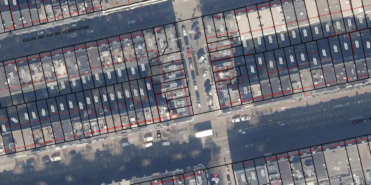 Het perceel waarop Dusartstraat 12-H staat heeft een oppervlakte van 62 m². Dit is een klein perceel. De perceeloppervlakte wordt geregistreerd door het Kadaster. Gedetailleerde informatie over de maten van dit perceel kunt u vinden in het rapport Kadastrale kaart met maatvoering van Dusartstraat 12-H.