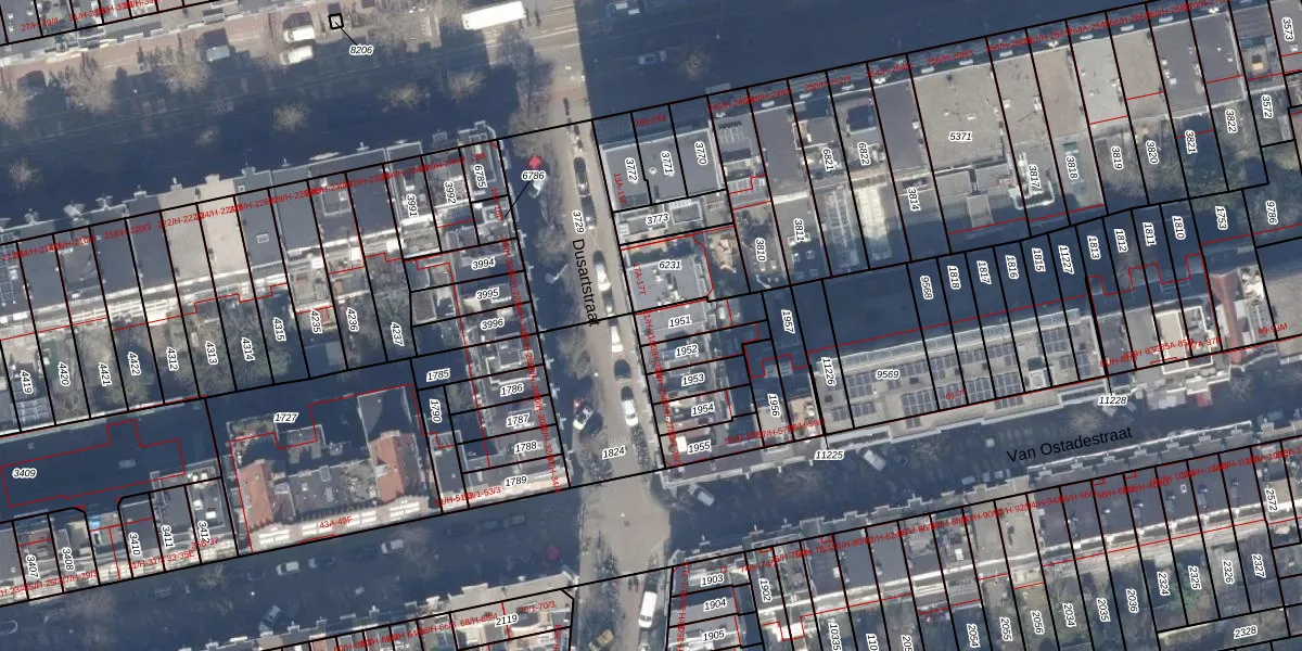 Het perceel waarop Dusartstraat 21-H staat heeft een oppervlakte van 91 m². Dit is een klein perceel. De perceeloppervlakte wordt geregistreerd door het Kadaster. Gedetailleerde informatie over de maten van dit perceel kunt u vinden in het rapport Kadastrale kaart met maatvoering van Dusartstraat 21-H.