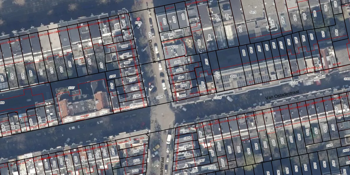 Het perceel waarop Dusartstraat 27-H staat heeft een oppervlakte van 72 m². Dit is een klein perceel. De perceeloppervlakte wordt geregistreerd door het Kadaster. Gedetailleerde informatie over de maten van dit perceel kunt u vinden in het rapport Kadastrale kaart met maatvoering van Dusartstraat 27-H.
