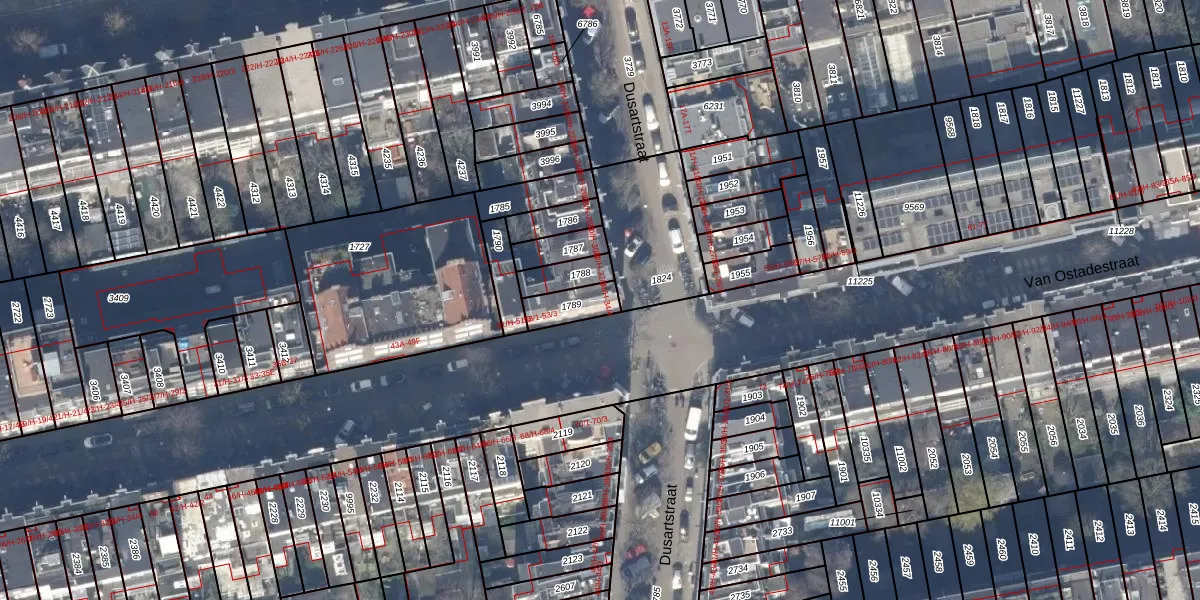 Dusartstraat 34-2 is gelegen op kadastraal perceel ASD18V1789. Deze kadastrale aanduiding is uniek en wordt gebruikt door het Kadaster om eigendomsrechten en andere zakelijke rechten vast te leggen. Het perceel maakt onderdeel uit van de kadastrale gemeente Amsterdam.