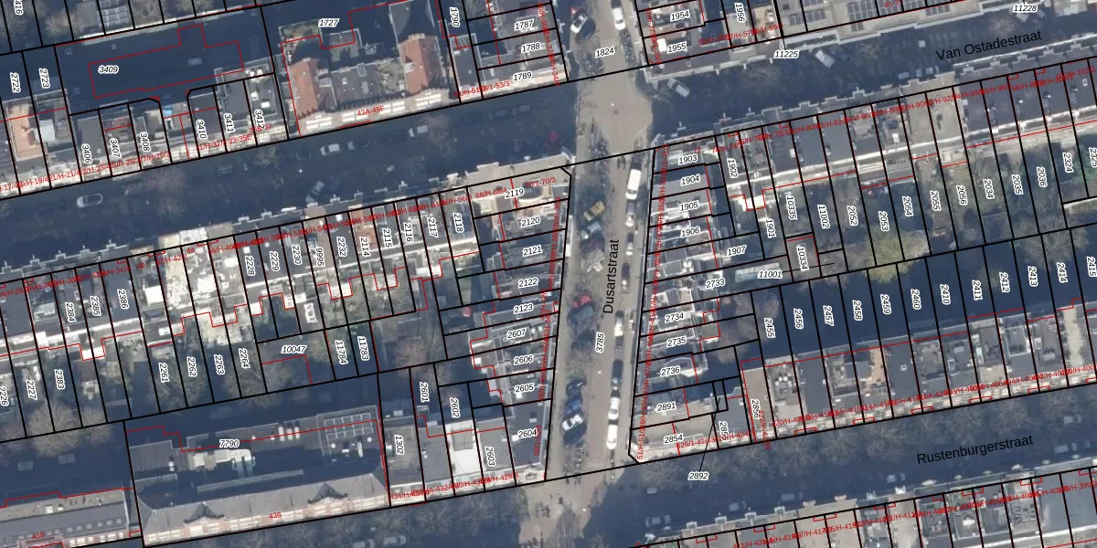 Dusartstraat 40-3 is gelegen op kadastraal perceel ASD18V2122. Deze kadastrale aanduiding is uniek en wordt gebruikt door het Kadaster om eigendomsrechten en andere zakelijke rechten vast te leggen. Het perceel maakt onderdeel uit van de kadastrale gemeente Amsterdam.