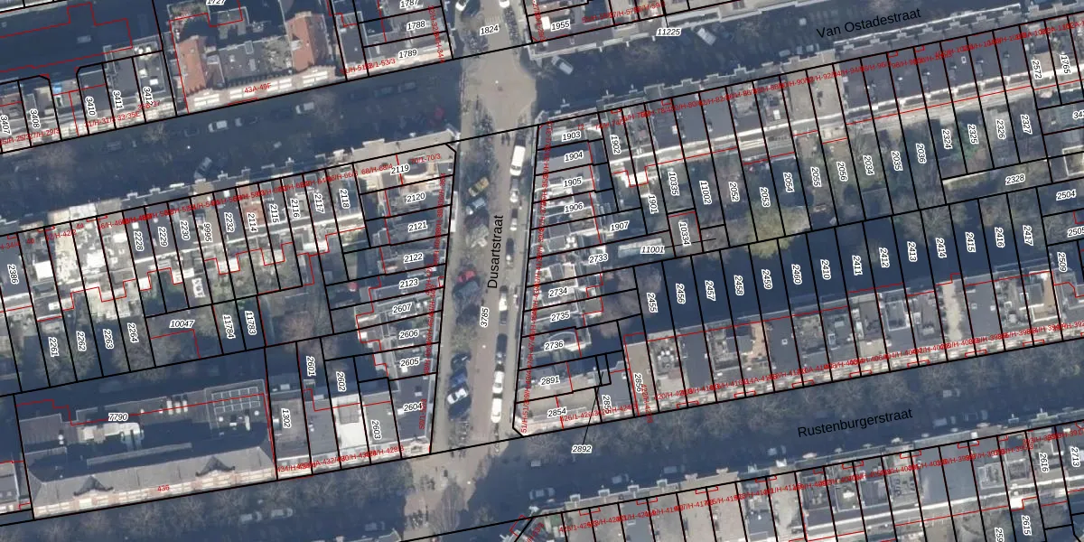 Dusartstraat 41-H is gelegen op kadastraal perceel ASD18V2733. Deze kadastrale aanduiding is uniek en wordt gebruikt door het Kadaster om eigendomsrechten en andere zakelijke rechten vast te leggen. Het perceel maakt onderdeel uit van de kadastrale gemeente Amsterdam.