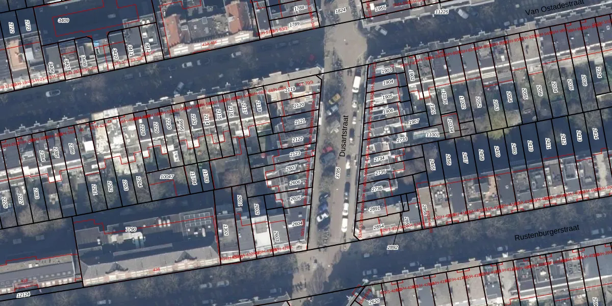 Dusartstraat 42-3 is gelegen op kadastraal perceel ASD18V2123. Deze kadastrale aanduiding is uniek en wordt gebruikt door het Kadaster om eigendomsrechten en andere zakelijke rechten vast te leggen. Het perceel maakt onderdeel uit van de kadastrale gemeente Amsterdam.