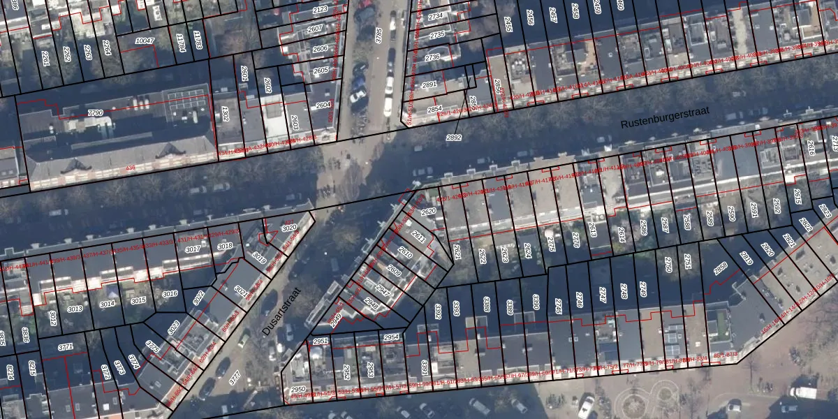 Dusartstraat 53-H is gelegen op kadastraal perceel ASD18V2620. Deze kadastrale aanduiding is uniek en wordt gebruikt door het Kadaster om eigendomsrechten en andere zakelijke rechten vast te leggen. Het perceel maakt onderdeel uit van de kadastrale gemeente Amsterdam.