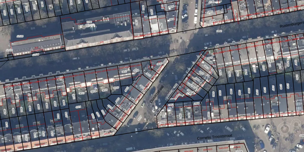 Het perceel waarop Dusartstraat 56-4 staat heeft een oppervlakte van 93 m². Dit is een klein perceel. De perceeloppervlakte wordt geregistreerd door het Kadaster. Gedetailleerde informatie over de maten van dit perceel kunt u vinden in het rapport Kadastrale kaart met maatvoering van Dusartstraat 56-4.