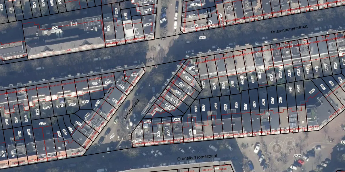 Het perceel waarop Dusartstraat 59-H staat heeft een oppervlakte van 91 m². Dit is een klein perceel. De perceeloppervlakte wordt geregistreerd door het Kadaster. Gedetailleerde informatie over de maten van dit perceel kunt u vinden in het rapport Kadastrale kaart met maatvoering van Dusartstraat 59-H.