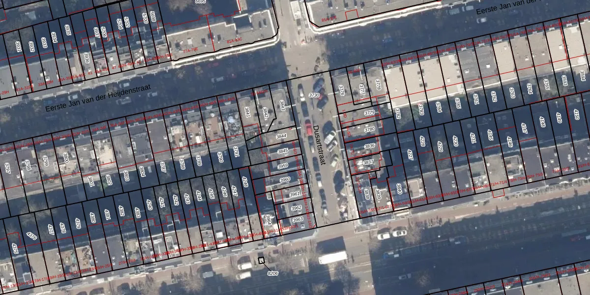 Het perceel waarop Dusartstraat 6-3 staat heeft een oppervlakte van 89 m². Dit is een klein perceel. De perceeloppervlakte wordt geregistreerd door het Kadaster. Gedetailleerde informatie over de maten van dit perceel kunt u vinden in het rapport Kadastrale kaart met maatvoering van Dusartstraat 6-3.