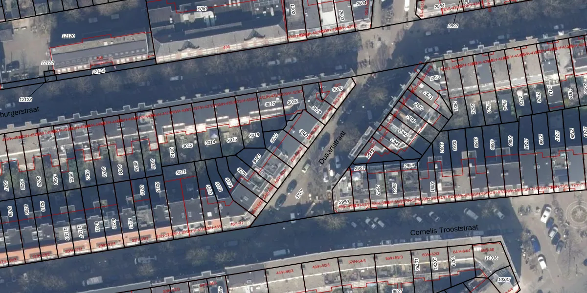 Het perceel waarop Dusartstraat 60-H staat heeft een oppervlakte van 116 m². Dit is een middelgroot perceel. De perceeloppervlakte wordt geregistreerd door het Kadaster. Gedetailleerde informatie over de maten van dit perceel kunt u vinden in het rapport Kadastrale kaart met maatvoering van Dusartstraat 60-H.