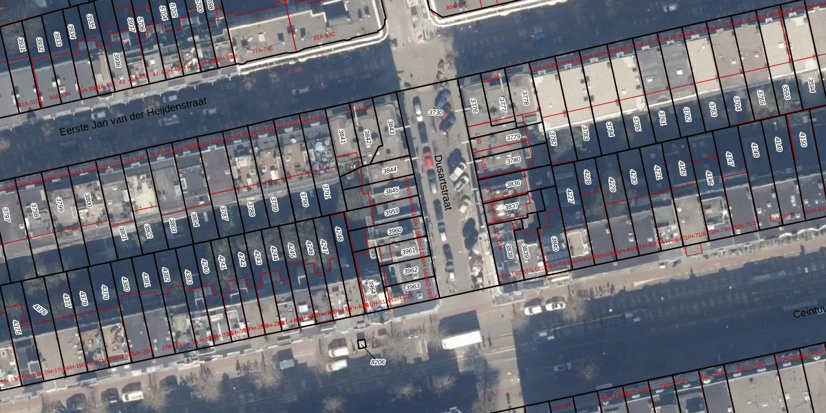 Het perceel waarop Dusartstraat 8-1 staat heeft een oppervlakte van 90 m². Dit is een klein perceel. De perceeloppervlakte wordt geregistreerd door het Kadaster. Gedetailleerde informatie over de maten van dit perceel kunt u vinden in het rapport Kadastrale kaart met maatvoering van Dusartstraat 8-1.