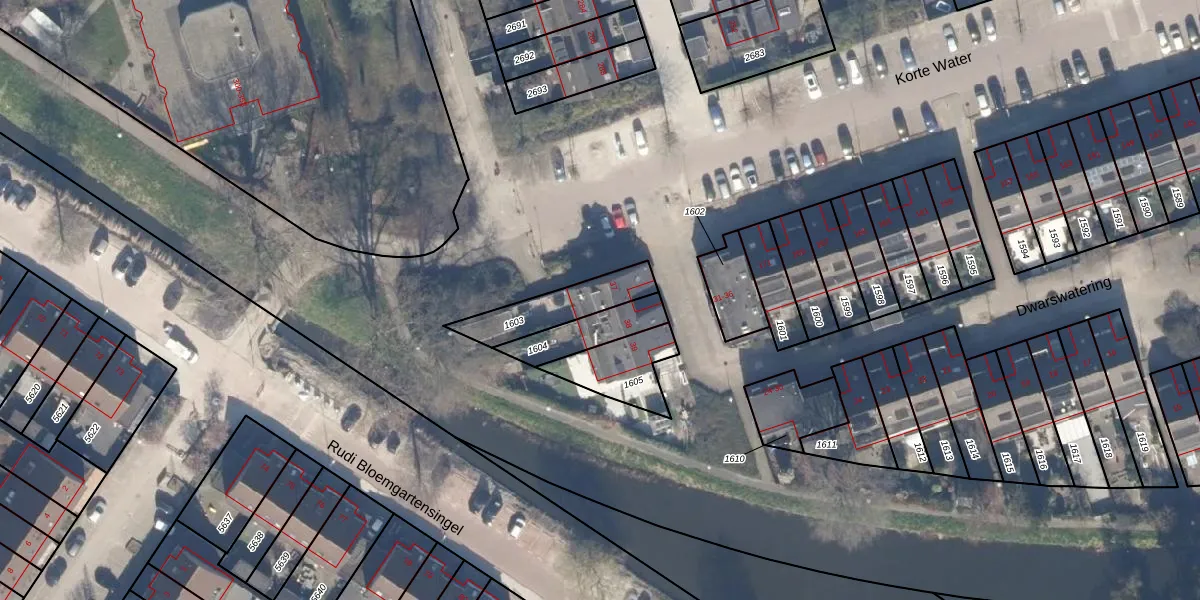 Dwarswatering 37 is gelegen op kadastraal perceel STN02G1603. Deze kadastrale aanduiding is uniek en wordt gebruikt door het Kadaster om eigendomsrechten en andere zakelijke rechten vast te leggen. Het perceel maakt onderdeel uit van de kadastrale gemeente Sloten Noord-Holland.