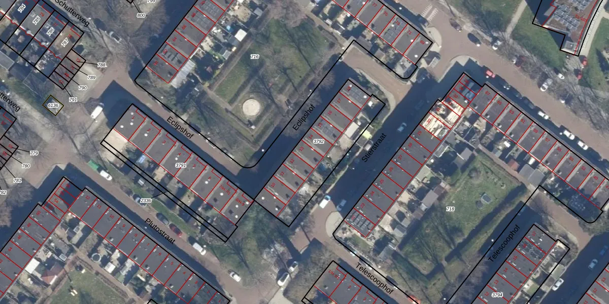 Het perceel waarop Eclipshof 13 staat heeft een oppervlakte van 736 m². Dit is een groot perceel. De perceeloppervlakte wordt geregistreerd door het Kadaster. Gedetailleerde informatie over de maten van dit perceel kunt u vinden in het rapport Kadastrale kaart met maatvoering van Eclipshof 13.