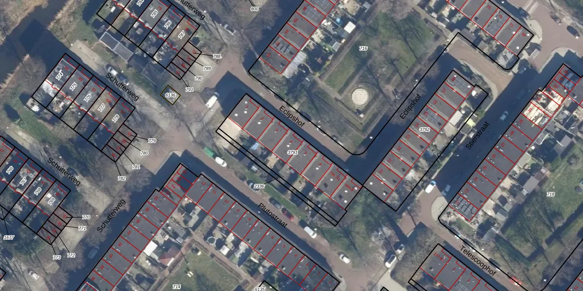 Het perceel waarop Eclipshof 4 staat heeft een oppervlakte van 781 m². Dit is een groot perceel. De perceeloppervlakte wordt geregistreerd door het Kadaster. Gedetailleerde informatie over de maten van dit perceel kunt u vinden in het rapport Kadastrale kaart met maatvoering van Eclipshof 4.