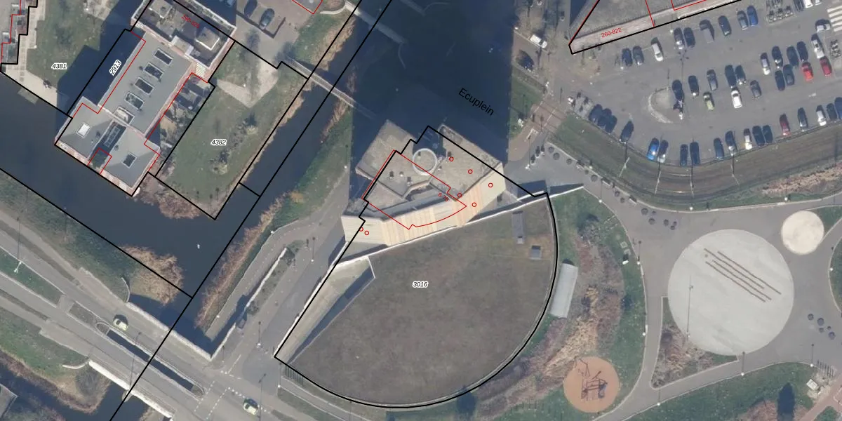Het perceel waarop Ecuplein 63 staat heeft een oppervlakte van 2814 m². Dit is een zeer groot perceel. De perceeloppervlakte wordt geregistreerd door het Kadaster. Gedetailleerde informatie over de maten van dit perceel kunt u vinden in het rapport Kadastrale kaart met maatvoering van Ecuplein 63.