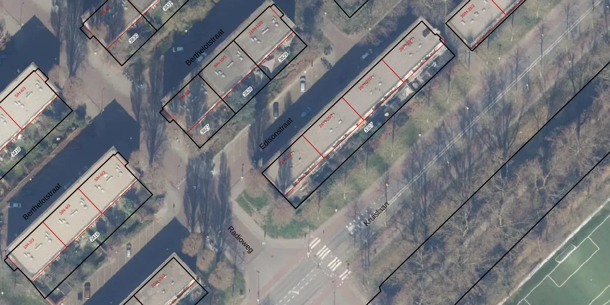 Het perceel waarop Edisonstraat 23-1 staat heeft een oppervlakte van 1160 m². Dit is een zeer groot perceel. De perceeloppervlakte wordt geregistreerd door het Kadaster. Gedetailleerde informatie over de maten van dit perceel kunt u vinden in het rapport Kadastrale kaart met maatvoering van Edisonstraat 23-1.