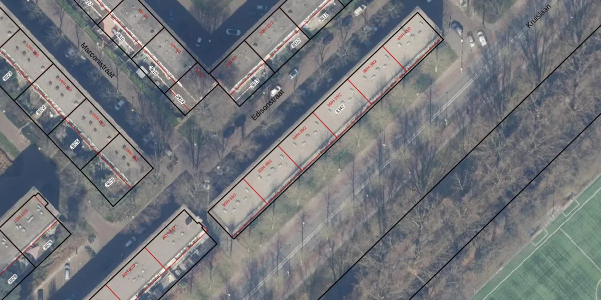 Het perceel waarop Edisonstraat 34-1 staat heeft een oppervlakte van 1206 m². Dit is een zeer groot perceel. De perceeloppervlakte wordt geregistreerd door het Kadaster. Gedetailleerde informatie over de maten van dit perceel kunt u vinden in het rapport Kadastrale kaart met maatvoering van Edisonstraat 34-1.