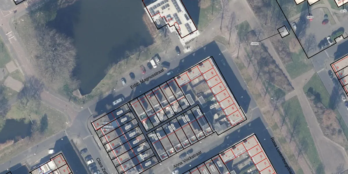 Het perceel waarop Edith Magnusstraat 7 staat heeft een oppervlakte van 95 m². Dit is een klein perceel. De perceeloppervlakte wordt geregistreerd door het Kadaster. Gedetailleerde informatie over de maten van dit perceel kunt u vinden in het rapport Kadastrale kaart met maatvoering van Edith Magnusstraat 7.